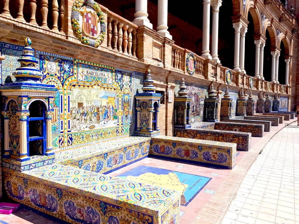 Plaza de España, situated inside the Maria Luisa Park is known as “the Venice of Seville”. The plaza was built in 1929 for the Ibero-American Exhibition, as Seville spent 19 years preparing for the world fair to welcome neighbouring countries and present Spain’s accomplishments in architecture to the rest of the world.
